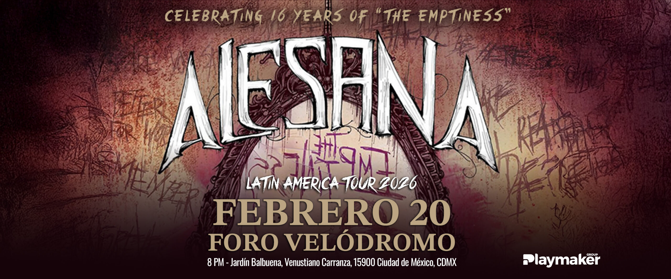 La reconocida banda estadounidense de post-hardcore y punk rock Alesana llegará a la Ciudad de México el próximo 20 de febrero para ofrecer una presentación especial en el Foro Velódromo, como parte de la celebración por el 16.º aniversario de su influyente álbum Emptiness.