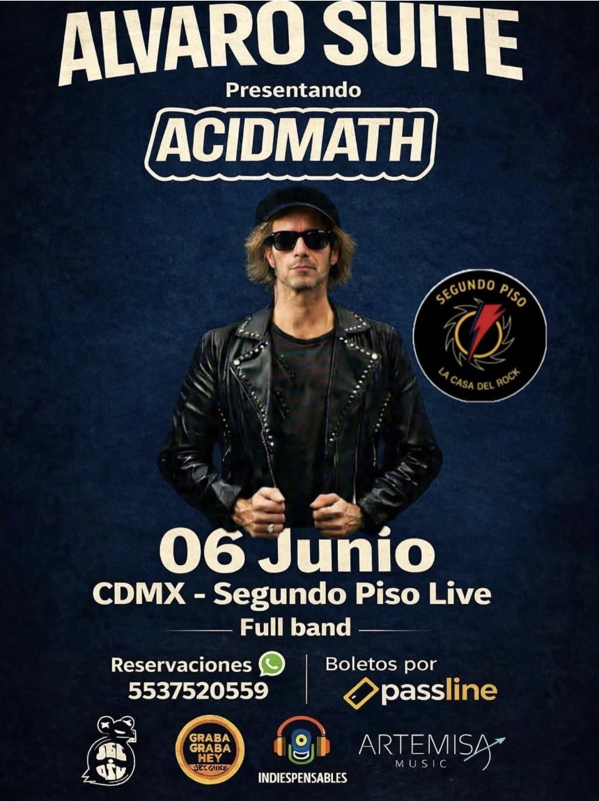 Hay artistas que construyen su carrera paso a paso y otros que, con el tiempo, logran encontrar un punto donde todo lo recorrido empieza a tomar sentido. En ese momento parece estar Álvaro Suite, quien anuncia su regreso a México para presentar “Acidmath”, un proyecto que no solo amplía su discografía, sino que deja ver una versión más frontal, más energética y, en muchos sentidos, más honesta de su sonido.