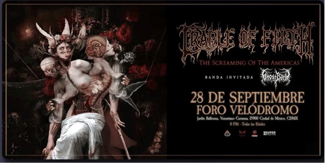 Este show en el Foro Velódromo promete ser una experiencia completa para los fans de la oscuridad, la teatralidad y la música brutalmente elaborada. México, conocido por ser uno de los públicos más apasionados del mundo, recibirá a Cradle of Filth con la devoción que merece una leyenda viva del metal extremo.