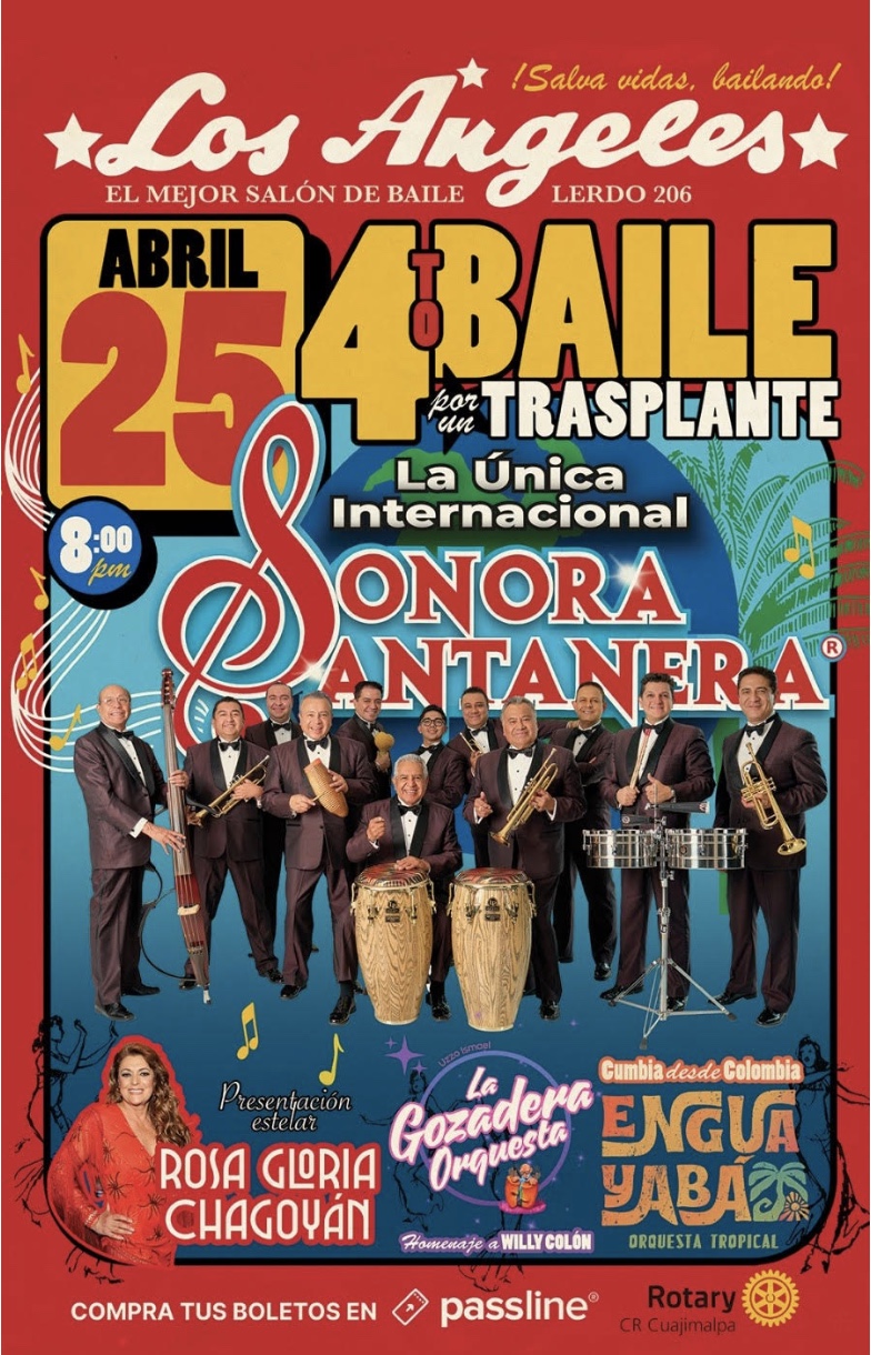 El latido de una causa que ha salvado vidas volverá a sentirse con fuerza este sábado 25 de abril en el Salón Los Ángeles, en un evento donde la música se convierte en esperanza compartida. Esa noche se celebrará el “4º Baile por un Trasplante”, organizado por el Club Rotario de Cuajimalpa, con boletos disponibles en Passline, y la promesa de transformar un salón de baile en un espacio de solidaridad y memoria. Para este acto se ha confirmado de forma inicial a La Única Internacional Sonora Santanera, una agrupación histórica pero también se contará con invitados especiales sorpresa que pronto serán revelados.