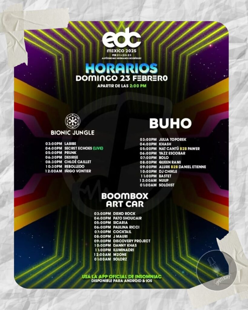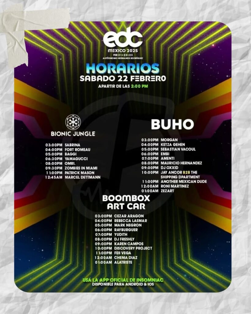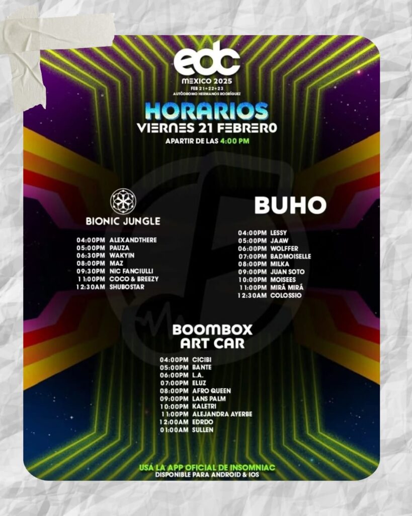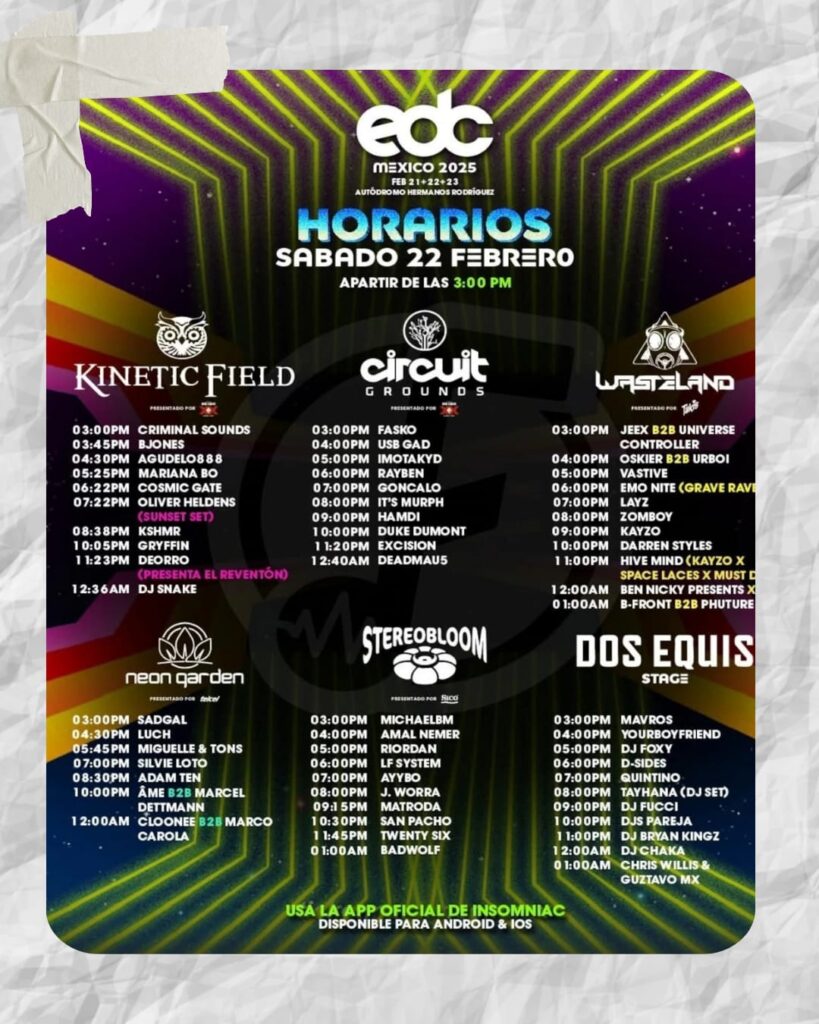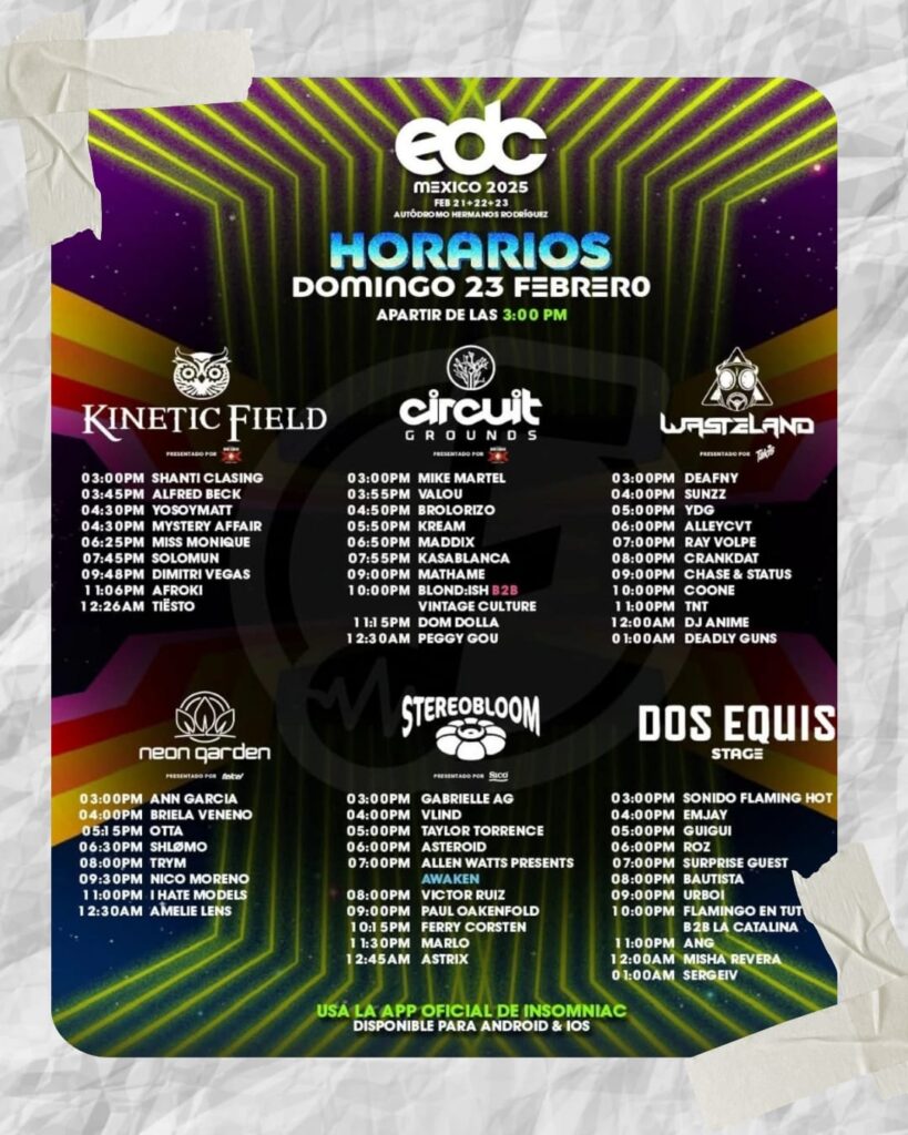 Para obtener los horarios detallados de cada artista y escenario, te invitamos a descargar la aplicación oficial de Insomniac Events. Esta herramienta te permitirá planificar tu experiencia, consultar mapas del recinto y recibir notificaciones en tiempo real. Puedes descargarla desde el siguiente enlace: