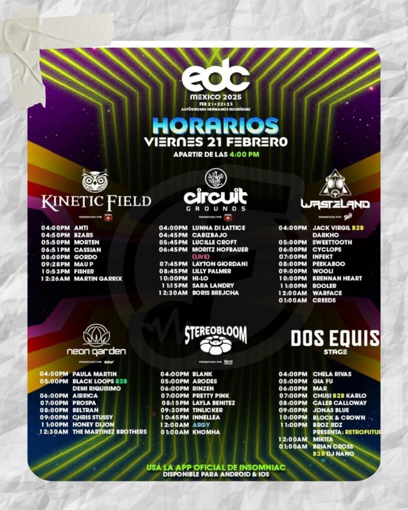 ¡Prepárate para vivir una experiencia inolvidable en el Electric Daisy Carnival (EDC) México 2025! Del 21 al 23 de febrero, el Autódromo Hermanos Rodríguez se transformará en el epicentro de la música electrónica, contando con nueve escenarios y más de 140 artistas de renombre internacional. A continuación, te presentamos los horarios y los actos de cada escenario para que no te pierdas a tus favoritos.