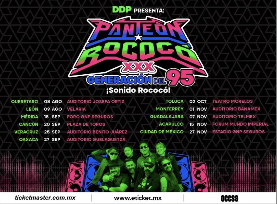 No hay fecha que no se cumpla, ni plazo que no se venza… tres décadas de vida alcanzaron al Panteón Rococó. Y para festejar esta historia plagada de puro buen rock, la banda realizará una gira por varias ciudades de la República Mexicana. Prepárate, toma nota y lánzate a festejar con Panteón Rococó: