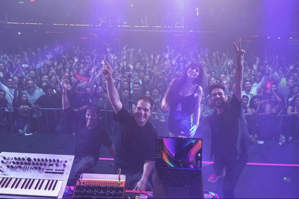 Un set primordialmente lleno de sus hits de los dos miles que siguen sonando frescos y bailables nos mantuvo contentos por hora y media, bailando esos ritmos electrónicos y House acompañados de percusiones y batería en vivo.